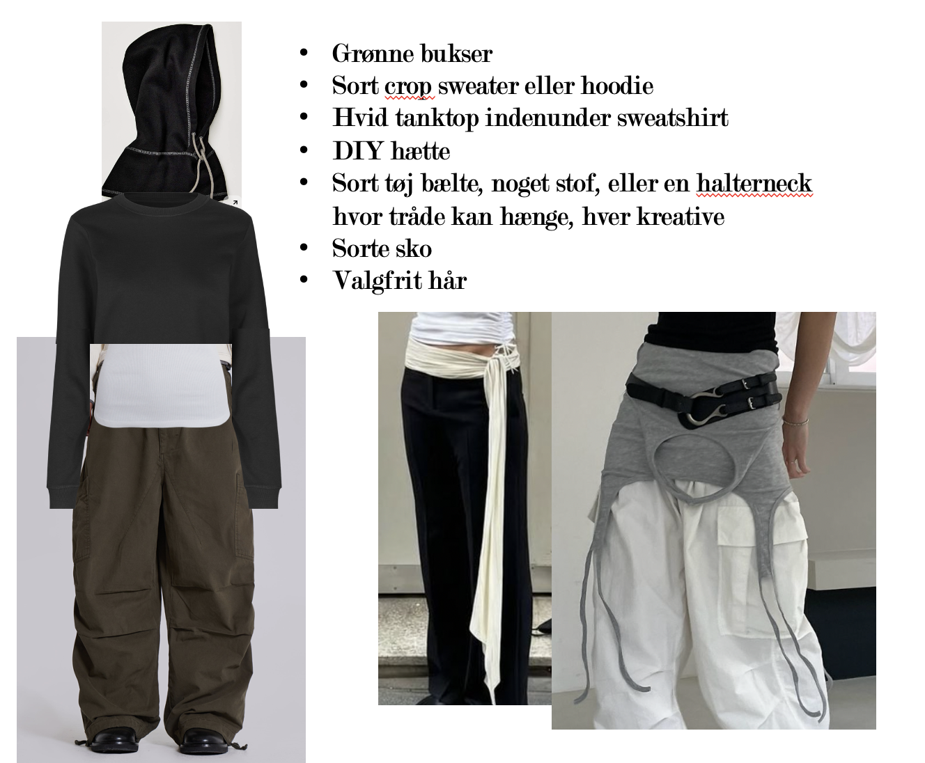 Styling : Crop skjorte, klip ærmer af, find cool accessories, hatte/Caps, bind trøje rundt om livet, læderjakke eller blazer til lag osv.